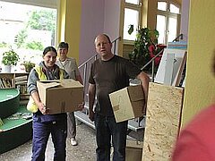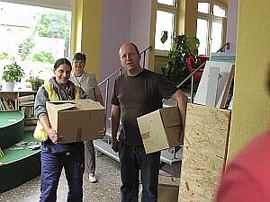 Die Fotos (von Klaus Miehe) entstanden beim Verpacken der Bücher im Salbker Lesezeichen und bei der Einweihung am Montag in Elbenau.