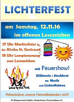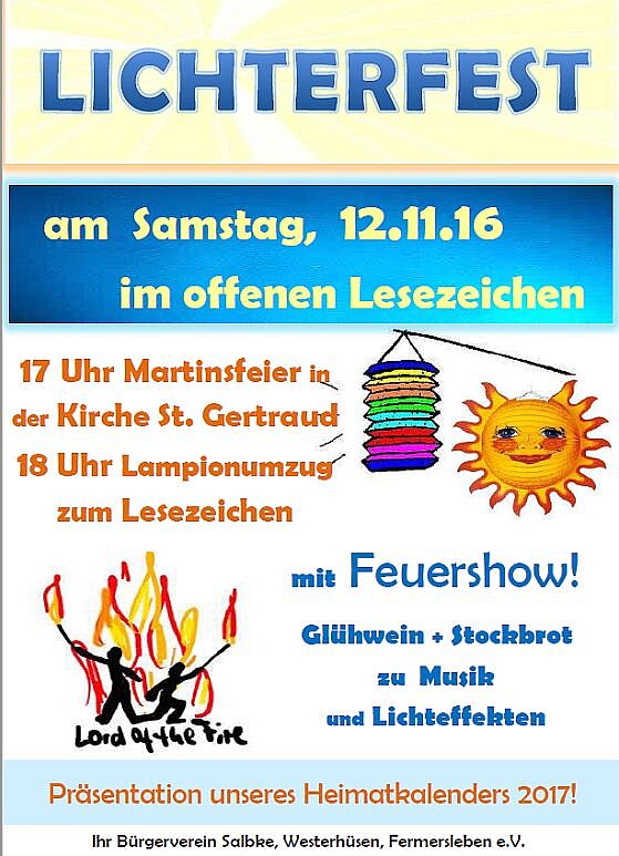 Am 12.11. findet das diesjährige Lichterfest des Bürgervereins Salbke, Westerhüsen, Fermersleben am offenen Lesezeichen statt.