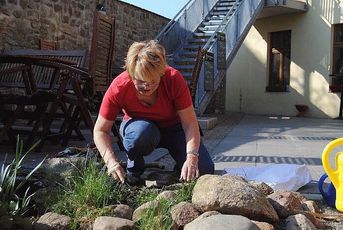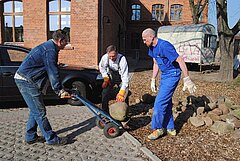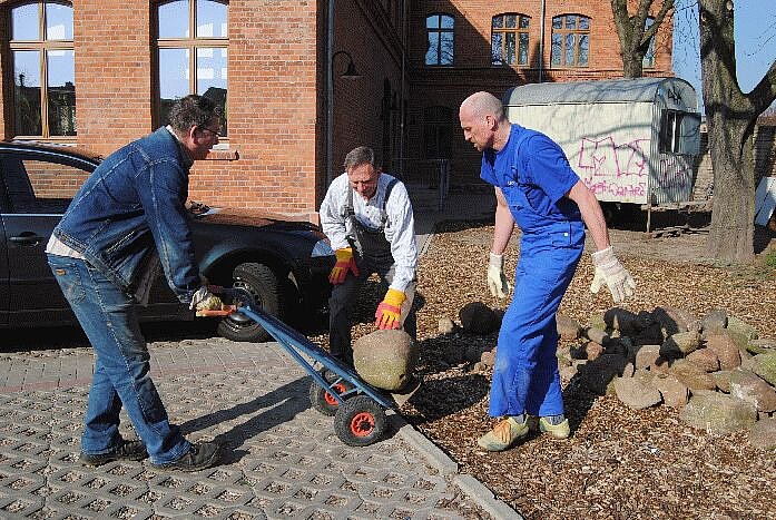 “Einige Steine habe ich drei mal umgedreht”, sagte Dirk Fiedler, der als Stellvertretender Vorsitzender des Fördervereins “Bürgerhaus Alte Schule Salbke” e.V. am Wochenende kräftig mit angepackt hat, um die Außenanlagen des beliebten Salbker Treffpunktes zu verschönern. Ein bepflanzter Steingarten und Wegbegrenzungen sind nun als Ergebnis von Fiedlers Mühe, und der der vielen anderen Helfer, auf dem Gelände zu sehen.