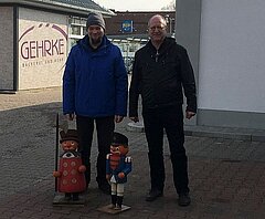 Jedes Jahr zu Weihnachten stand in der Kita „Salbker Kinderspaß“ ein großer Weihnachtsbaum. Flankiert wurde dieser von beiden beiden Figuren. Diese haben den Abriss überlebt und wurden nun an alter Wirkungsstätte durch die Mitglieder des Bürgervereins Salbke, Westerhüsen, Fermersleben Dennis Jannack und Rainer Mann zusammengeführt. Beide Kumpels würden sich freuen, wenn die neue Kita in Salbke den Namen ihrer alten Heimat bekommt und zukünftig „Salbker Kinderspaß“ heißen wird.
